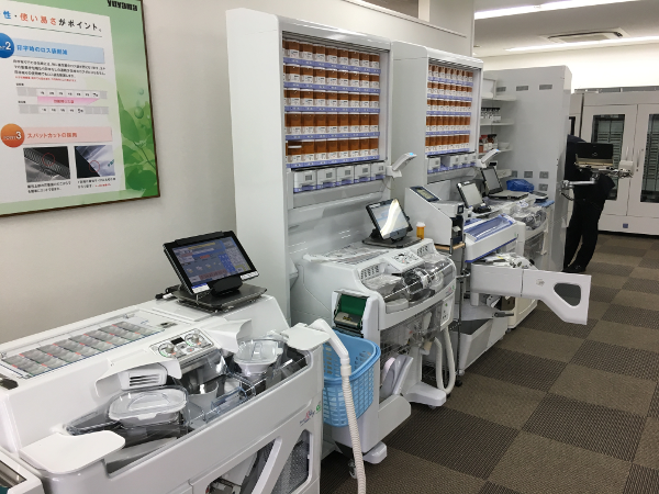 今回の見学の目的は調剤ロボットDimeROとMiniDimeRO。最近少しずつ導入実績が出てきている商品です。